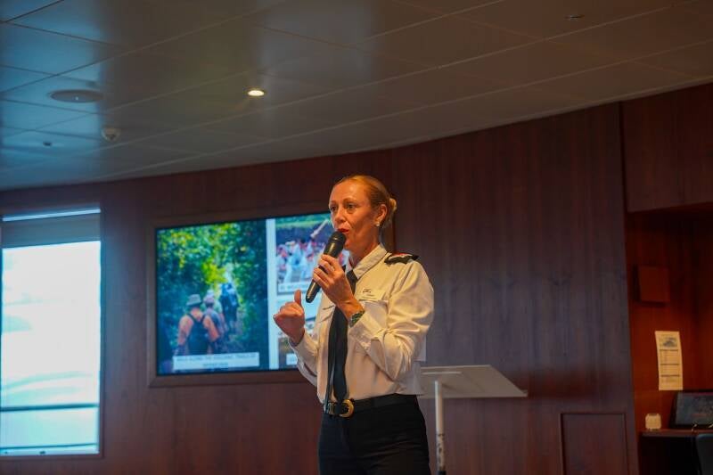 This is the biggest cruising day so there are a few lectures on on level 6. After a buffet breakfast we headed off to a lecture by Goyma on the "Ancient Languages of Australia". Goyma is a lovely gentle guy with a really kind manner and is obviously here to give put the indigenous lense on the Kimberly for the "Balanders" (derived from Hollandas as the early white people to visit Australia). He is originally from Arnhem land and speaks frequently of Ian Morris his "adopted" father who seems have introduced him to a career in tourism and cruising, oops i mean expeditions. I know very little about the ancient languages, (I don't recall anything beyond French, German or Japanese at school let alone much history on Aboriginal culture and language. The indigenous words are quite difficult to remember unfortunately. According to Goyma he prefers the term indigenous over first nations people.